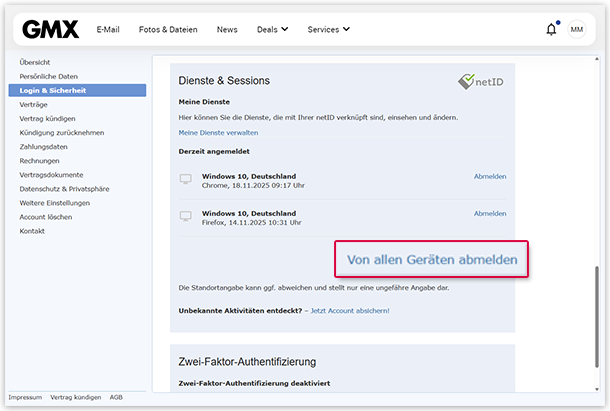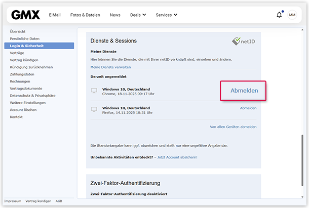 Führen Sie einen der folgenden Schritte aus, um auf GMX Mein Account zuzugreifen: