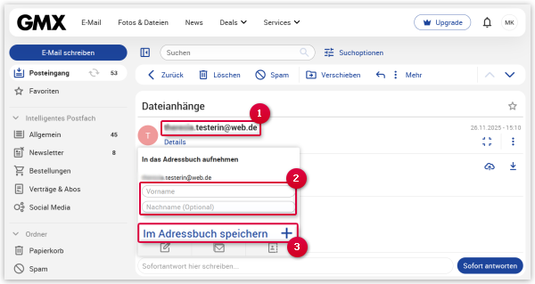 Klicken Sie auf Im Adressbuch speichern.